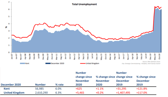 Whilst I was unable to find data relating to the level of rental arrears, it is certainly interesting to highlight how unemployment in Ashford has hit 6% and whilst this is by far not the worst area in Kent (with Thanet at 10.2%), it represents a rise of 121% between December 2019 and December 2020; slightly above the UK average increase of 117%.
