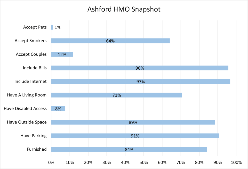 I have taken my analysis on a step to compile an overview of the makeup of Ashford HMOs and the graph below certainly shows some interesting data!