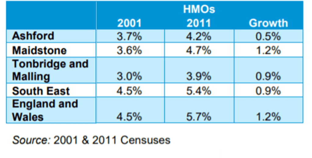 Whilst slightly older data, the last census helps shed additional indication to the level of HMO market growth and I will be publishing a more up to date comparison following a recent Freedom of Information request to Ashford Borough Council to see if this growth has continued on the same trajectory.